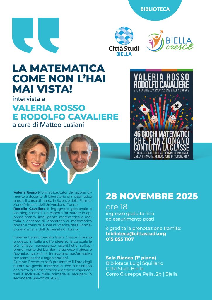 L’evento dialoga con la proposta di lettura Biella Cresce e la matematica