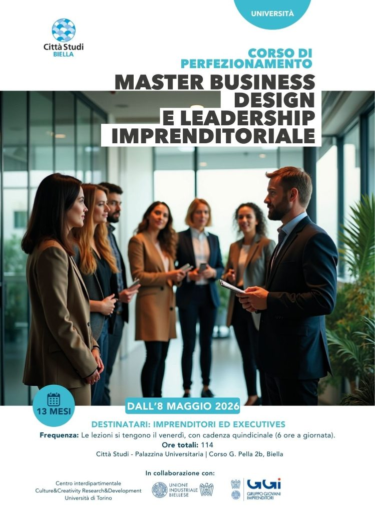 “Il Master in Business Design e Leadership Imprenditoriale è un percorso progettato con le aziende per rispondere alle reali necessità degli imprenditori – sostiene Alessandro Bonadonna, Coordinatore Scientifico del corso –. Il programma si articola in tre macro moduli focalizzati su leadership, modelli organizzativi e creazione di valore. La struttura didattica è pensata per essere concreta: ogni lezione frontale è seguita da un’applicazione pratica in azienda e da un successivo confronto sui risultati. Grazie a un calendario flessibile e a un corpo docenti d’eccellenza, composto da professori dell’Università di Torino e professionisti del settore, offriamo un supporto tangibile allo sviluppo del territorio in collaborazione con l’Unione Industriale Biellese e il suo Gruppo Giovani Imprenditori, il cui contributo è stato fondamentale per tradurre le reali necessità del tessuto imprenditoriale in un percorso capace di innescare trasformazioni tangibili e durature nelle imprese”.