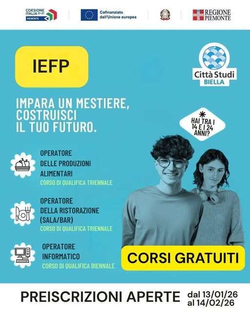 In risposta a queste esigenze, Città Studi organizza un Open Day giovedì 15 gennaio, dalle 14.30 alle 19, per presentare i corsi destinati ai giovani in obbligo scolastico e formativo per l’anno scolastico 2026/27. Questi percorsi completamente gratuiti, grazie al finanziamento della Regione Piemonte, sono rivolti a ragazzi tra i 14 e i 24 anni.
