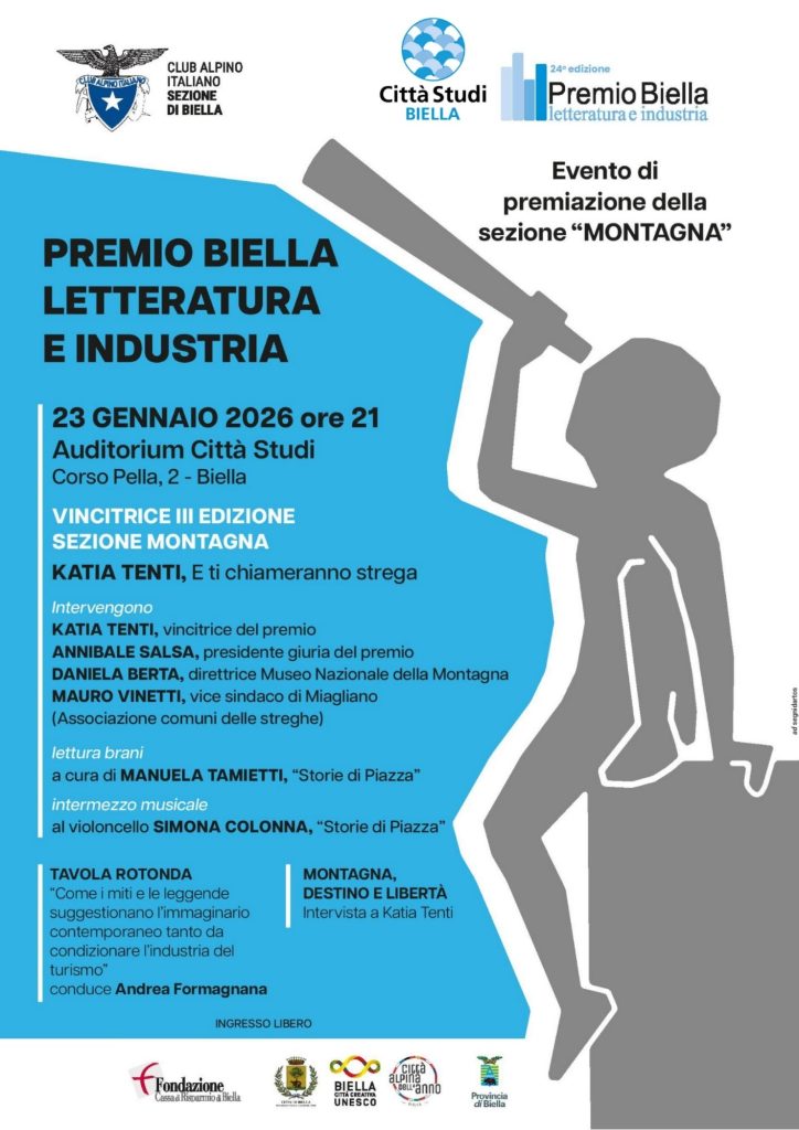 Sarà una serata di parole, musica e memoria quella in programma venerdì 23 gennaio 2026 alle ore 21, all’Auditorium di Città Studi Biella, per la premiazione della Sezione Montagna del Premio Biella Letteratura e Industria – Premio CAI Biella 2025.